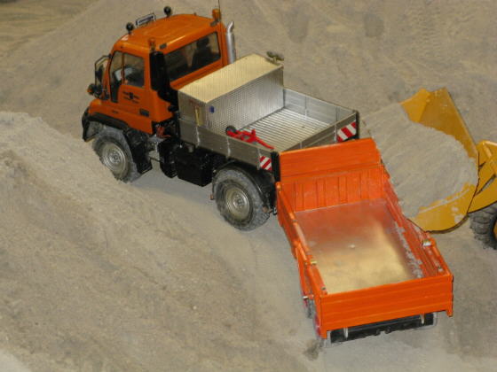 Und die "Trucker" schaufelten fleißig Sand von einem zum anderen Ende der Halle.