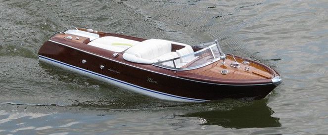 Beschreibung: -- Motorboot Riva Aquarama -- Fertigmodell aus Korea -- Maßstab 1:10 -- Länge = 85 cm -- 3,0 kg Gewicht -- innen umgebaut mit Motor "Pichler Boost 18S" -- Robbe rookie 35 Regler -- Graupner Mini-Servo für die Ruderanlage -- Stromversorgung durch Emmerich 7,2V/5Ah mit BEC -- 2,4 GHz Fernsteuerung von Carson -- Umbauzeit 3 Wochen |
