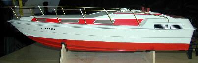 Vorbildähnliches Modell einer schnellen Motoryacht. Baukastenmodell im Maßstab 1:20