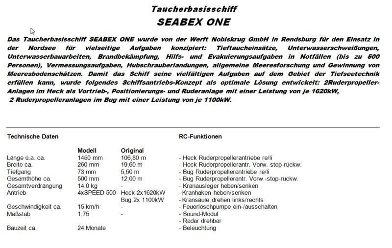 Bohrinselversoger / Tauchbasisschiff "SEABEX ONE" ( graupner )