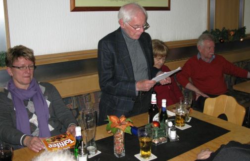 Ab 19 Uhr trudelten unsere Mitglieder, oft mit "Anhang", recht zügig in unserer Vereinsgaststätte ein. Der Ablauf: Begrüßungen, Speisen, Rückblick, Vorlesungen, Wichteln, Weihnachtsquiz und Verteilung des neuen Clubheftes.