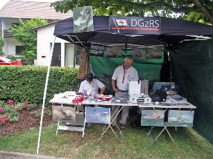 Der Freude der Besucher und der Modellschiffkapitäne tat dies keinen Abbruch. Im Gegenteil, so konnte man sich ungestört mit den Gästen unterhalten und viel mehr als bei großen Veranstaltungen erklären. Mit uns war auch die DGzRS mit einem Stand dabei. Auch dieser wurde ganz gut frequentiert und man sah, dass auch hier viel gefragt und erklärt wurde. Stärkung für die Aussteller war reichlich vorhanden, war der Marktplatz doch voll von Bier- und Weinzelten, für den Magen gab es außer heimischer Kost (sehr zu Empfehlen, Sauerkraut mit Böhmischen Schinken z. B. in offenen Kessel über Holzfeuer), natürlich die Spezialitäten aus anderen Ländern wie Türkei, China, Italien usw. Musikalische Darbietungen durch Amateurmusiker und Profis hatten für jeden Geschmack was dabei, auch wenn es manchmal doch etwas zu modern war. Kurzum, die Ausstellung war wieder mal ein schöner Erfolg und alle hatten sichtlich Spaß daran.