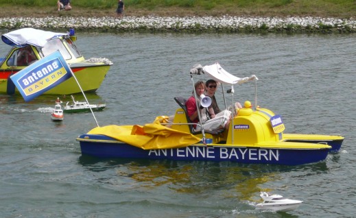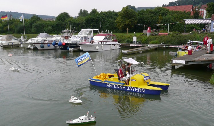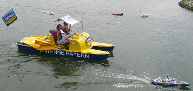 Tretboot-Extrem-Strampler Wolfgang Leikermoser von ANTENNE BAYERN wagte eine Tretbootfahrt von Bamberg nach Passau in Etappen auf dem Rhein-Main-Donau-Kanal und der Donau. Es sollen ca. 400km Strecke sein. Dauer der Strampelzeit 10 Tage. Der Schiffsmodellbauclub Nürnberg e.V. war am 4.Tag dabei.