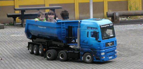 Es wurden Kinder und auch Erwachsene in einem Modell-Muldenkipper transportiert.