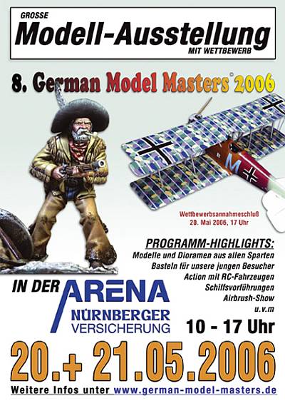 20. und 21. Mai 2006 in Nürnberg: Regen, Wind und Sonne wechseln sich ab; und die Temperatur ist auch nicht so das Gelbe vom Ei... Nichts desto Trotz: Herr Alf Murr (wird im weiteren Verlauf nur noch mit "Alf" betitelt) vom Modell-Center Nürnberg hat mit seiner Mannschaft erreicht, wovon andere träumen: Die 8. GMM findet wieder in der Arena in Nürnberg statt!