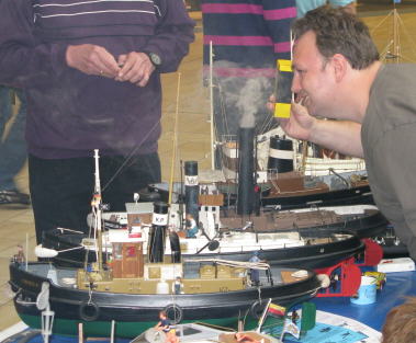 Den Vogel schoss unser Mitglied Marian ab. Er hatte extra für die heutige Ausstellung sein Zollboot "Hamburg" gereinigt, Fahrschäden ausgebessert und alle Funktionen wie Motoren, Pumpe, Radar, Monitor, Beleuchtung, Sound usw. überprüft und, falls notwendig, repariert. Ein Schmuckstück ist aus dem Gebrauchsboot geworden. Stolz präsentierte er den ersten Gästen, was es alles kann. Bis auf den Sound war alles ok. Was war los? Keiner konnte sich die seltsamen Brummgeräusche erklären. Die Motoren- oder Signalgeräusche klangen seltsam unrein. Überprüfungen ohne Ende, nichts kam raus. Man bat mich später mal nachzusehen. Ich nahm das Oberdeck ab, drehte es seitlich, um die Kabel zu trennen - und oh Schreck - kein Wasser weit und breit, aber im Boot war es, im Lautsprecher! Das Gelächter der SMCler und Besucher war ansteckend... Gut, wenn der Speaker trocken ist wird wieder ein guter Ton herauskommen. Der Grund für das Wasser im Lautsprecher: Das Schiff wurde in der Badewanne gereinigt und geduscht! Für den guten Ton muss nun mal eine Öffnung sein...