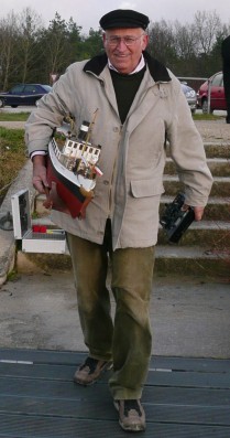 Mein Sohn Marian drängte mich, unsere Schiffe ins Wasser zu setzen. So fuhr auch ich kurzzeitig mit meinem Sea-Commander. Kurz deswegen, weil die Kälte die Akkulaufzeit drastisch verringerte. Auch die anderen setzten nach und nach ihre Modelle ins Wasser. Es war fast mehr los als im Sommer! Um 14 Uhr hatten wir uns getroffen, gegen halb fünf war alles wieder zu Ende. Leider! Aber die Kälte wurde nun doch stärker. Beim Aufräumen halfen viele mit, sodass kurz darauf wieder nur ein verlassener matschiger Parkplatz zu sehen war.