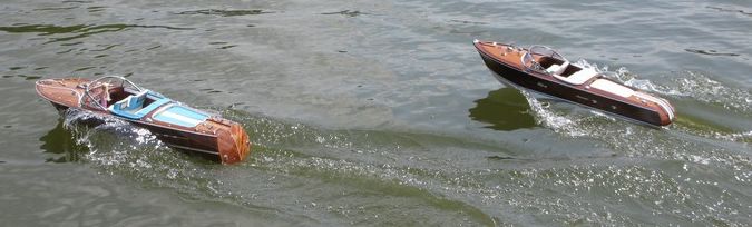 Beschreibung: -- Motorboot Riva Aquarama -- Fertigmodell aus Korea -- Maßstab 1:10 -- Länge = 85 cm -- 3,0 kg Gewicht -- innen umgebaut mit Motor "Pichler Boost 18S" -- Robbe rookie 35 Regler -- Graupner Mini-Servo für die Ruderanlage -- Stromversorgung durch Emmerich 7,2V/5Ah mit BEC -- 2,4 GHz Fernsteuerung von Carson -- Umbauzeit 3 Wochen |