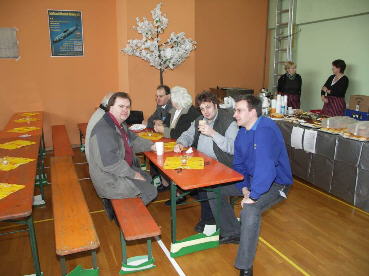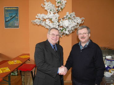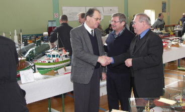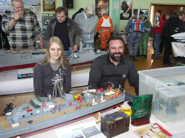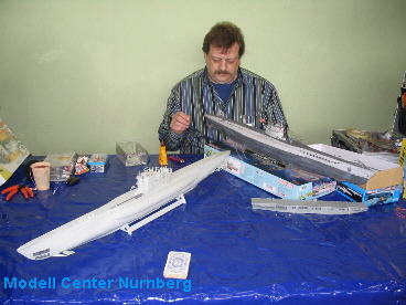 Herr Vollbrecht von der Stadt Feucht, unserem nächsten Veranstaltungsort mit U-Boot-Treffen, war auch mit Familie vorbeigekommen. Ich denke, diese freuten sich schon auf das Spektakel, das in knapp 5 Wochen bei ihnen abläuft. Und ich hoffe, dass dabei auch mal schönes Wetter vorhanden ist. Die Verköstigung unserer Gäste wurde von Anita Schlicker, Sonja Schwarzmeier, Kerstin Müller, Petra Reusch und Christine Ott perfekt durchgeführt. Ich habe viel probiert, ob warm oder kalt, es war einfach nur gut. Ein großes Lob und viel Dank für ihren Einsatz und allen weiteren Personen, die auch im Hintergrund mitarbeiteten und für den reibungslosen Ablauf sorgten! Etliche befreundete Händler aus unserer Region waren mit einen kleinen Teil ihres Angebots vertreten und ich hoffe, dass auch diese zufrieden sind. Haben sie doch mit viel Einsatz wunderbare Stände für die Ausstellung eingerichtet. Insgesamt haben acht Vereine und zwölf Aussteller bei unserer Jubiläums-Veranstaltung mitgewirkt. Wer natürlich auch nicht fehlen durfte war die DGzRS, wie immer durch Herrn Torsten Brudereck und Herrn Eric Schuhmann vertreten. Auch ihr Info-Stand erschien prächtiger denn je. Noch schöner war allerdings ein Stand mit Modeschmuck, aufgewertet durch zwei reizende Damen. Gegen diese hatten die Modellbauer keine Chance. Aber dies ist ein anderes Thema...