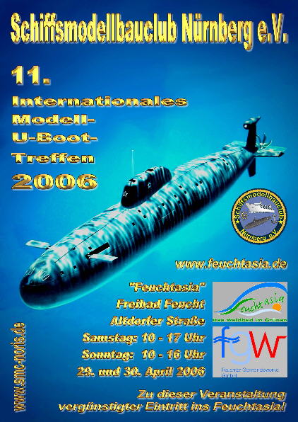 11.Internationales Modell-U-Boot-Treffen Nürnberg 2006 Bericht: Klaus Müller Am 29. und 30. April 2006 war es endlich soweit: Das 11. U-Boot-Treffen konnte mit einem Jahr Verzögerung beginnen! Unser langjähriger früherer Austragungsort, das Freibad Langwasser, wurde im letzten Jahr nicht mehr freigegeben und wird wohl über kurz oder lang endgültig geschlossen. Jaja, die Kommunen haben für solche Sachen natürlich kein Geld mehr zum Renovieren. Ist ja nur ein Bad mit Liegewiese gewesen...