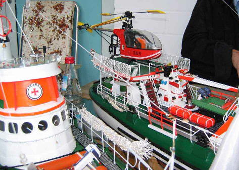 Schade, denn es waren sehr viele neue Modelle zu sehen. Besonders ist mir ein Rettungskreuzer der DGzRS mit einem richtig ferngesteuerten Hubschrauber auf dem Achterdeck aufgefallen.
