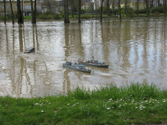 Am 13.4.08 fand in Würzburg die alljährliche Bocksbeutelregatta des MSC Würzburg e.V. statt. Nachdem sich der Main über Nacht so mir nichts Dir nichts gedacht hat, die Planung über den Haufen zu werfen, fiel das Kursfahren aus. Die Laune verdorben hat es trotzdem niemandem. Es war wie immer ein spaßiger Tag am Graf-Luckner-Meer und eine Flasche Bocksbeutel gab's hinterher auch . . . |